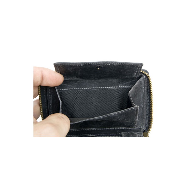 Peněženka HL z černé pravé kůže dokola na kovový zip. Rozměr 10,5 x 12,5 cm.