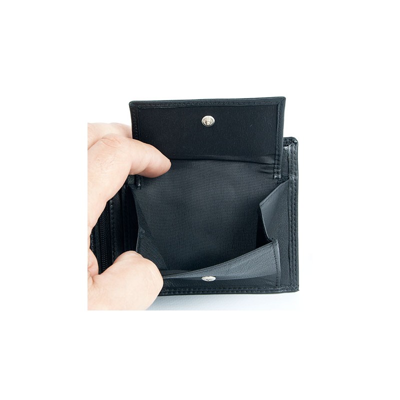 Kožená peněženka z měkké černé pravé kůže. Rozměr 12,5 x 9,7 cm.
