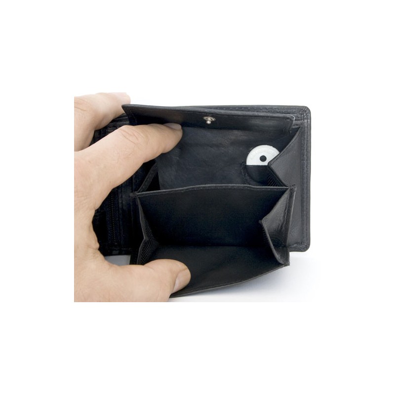 Kožená peněženka z měkké černé pravé kůže. Rozměr 12,5 x 9,7 cm.