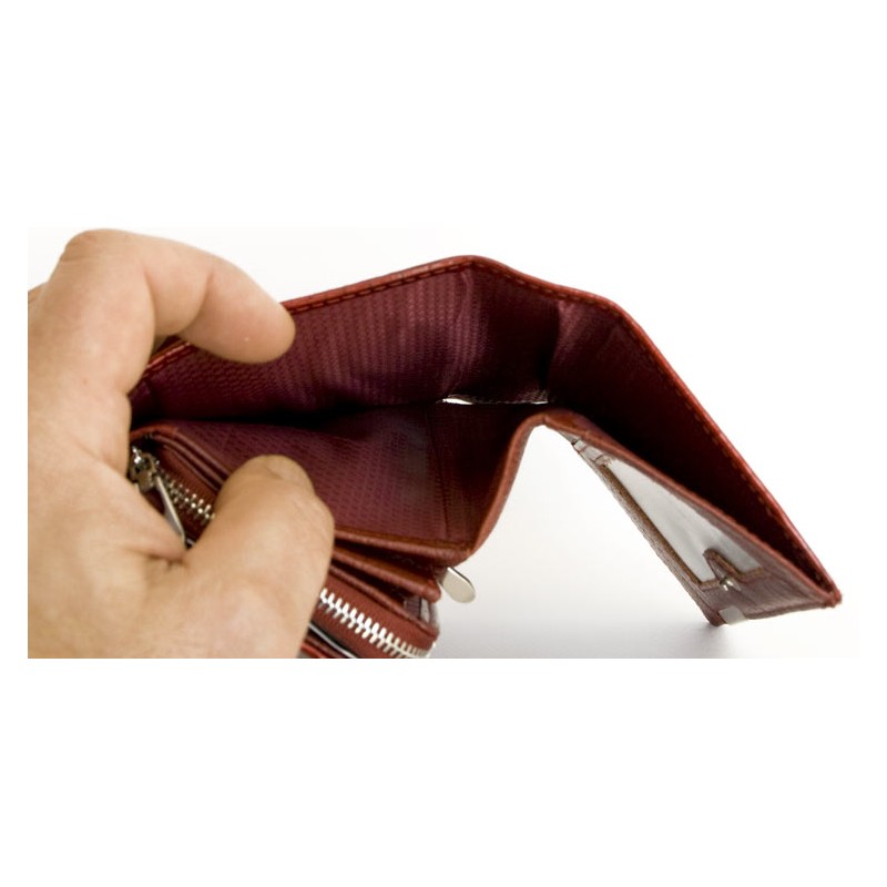 Červená kožená fóliovaná peněženka Jennifer Jones. Rozměr 8,5 x 17 cm.