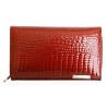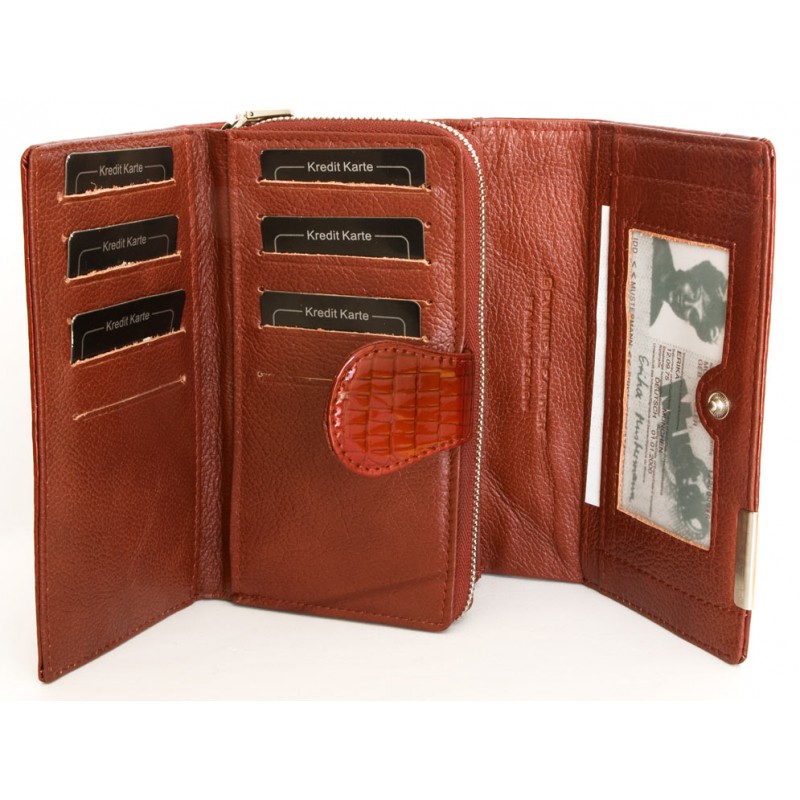 Červená peněženka z hovězí kůže s povrchovou úpravou jako hadí. Potisk a...