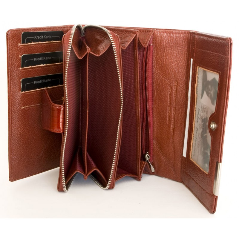 Tato luxusní červená kožená peněženka Jennifer Jones je z pravé kůže, tak jako všechny dámské kožené peněženky, které máme v nabídce.