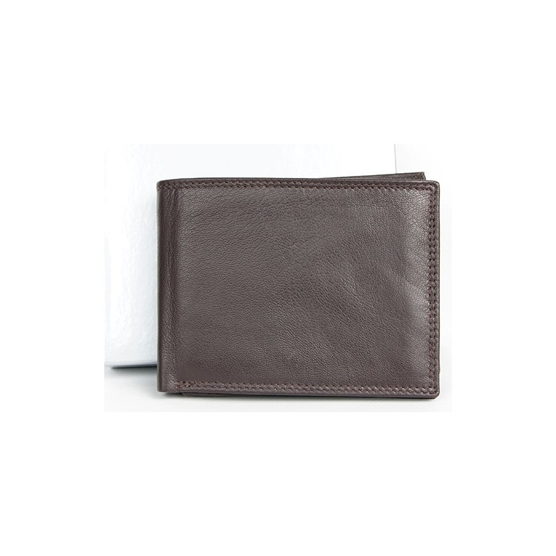 Tmavě hnědá kožená peněženka z měkké kůže bez...
