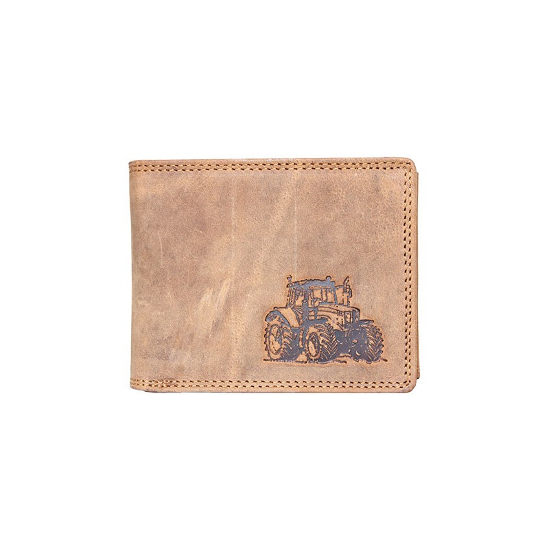 Kožená peněženka Born to be wild z přírodní pevné kůže s traktorem. Rozměr 12 x 9,5 cm.