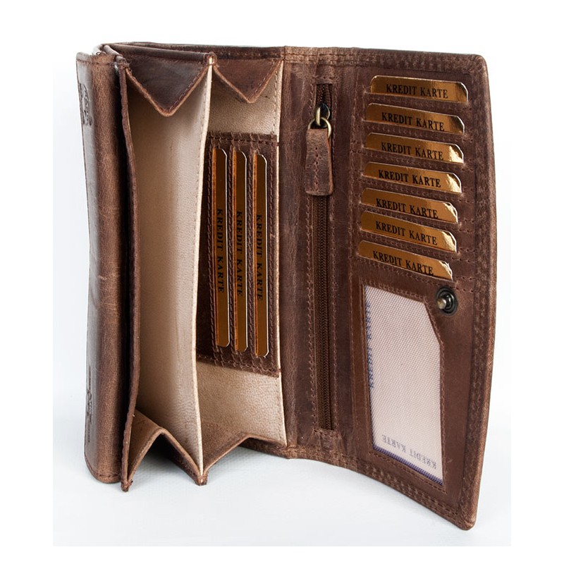 Celá kožená peněženka Pedro ze silné přírodní kůže. Rozměr 17 x 10-11 cm (dva...