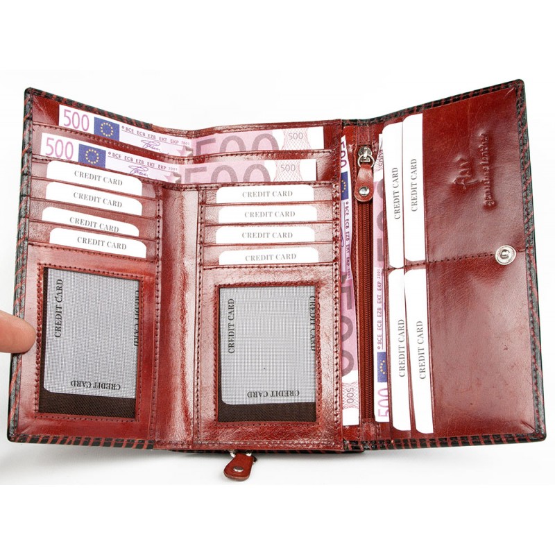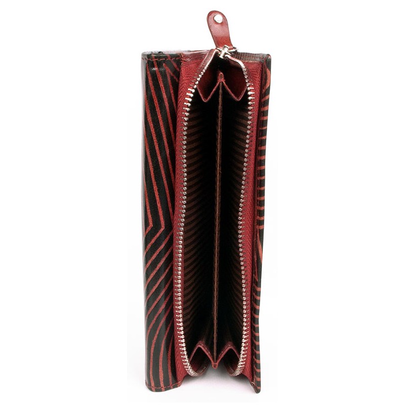 Tato červeno-černá kožená peněženka je z pravé kůže, tak jako všechny dámské kožené peněženky, které máme v nabídce.