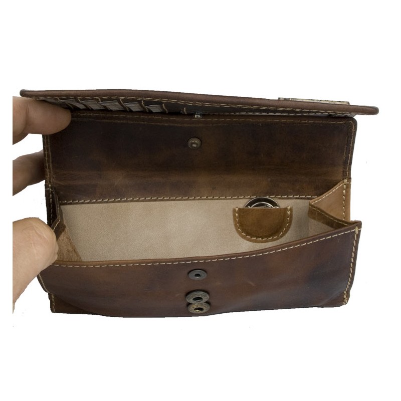 Celá kožená olejovaná peněženka z pevné přírodní kůže s raženým květem....