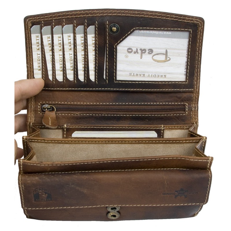 Tato klasická kožená peněženka Pedro je z pravé kůže, tak jako všechny dámské kožené peněženky, které máme v nabídce.
