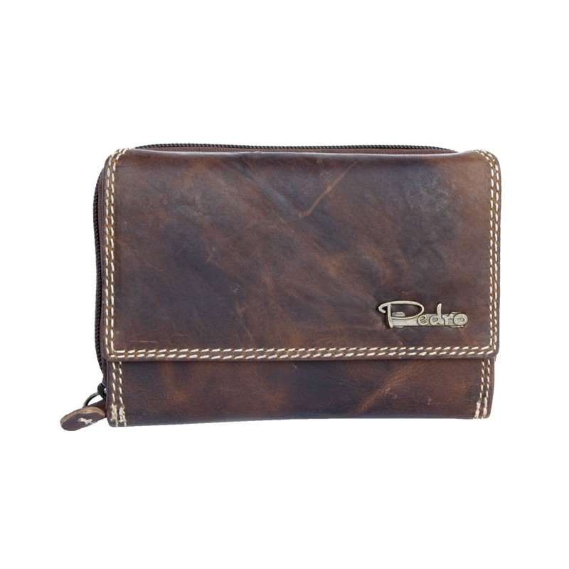 Dámská peněženka Pedro z bytelné hlazené přírodní kůže s ochranou dat (RFID). Rozměr 15 x 9,5 x 4 cm.