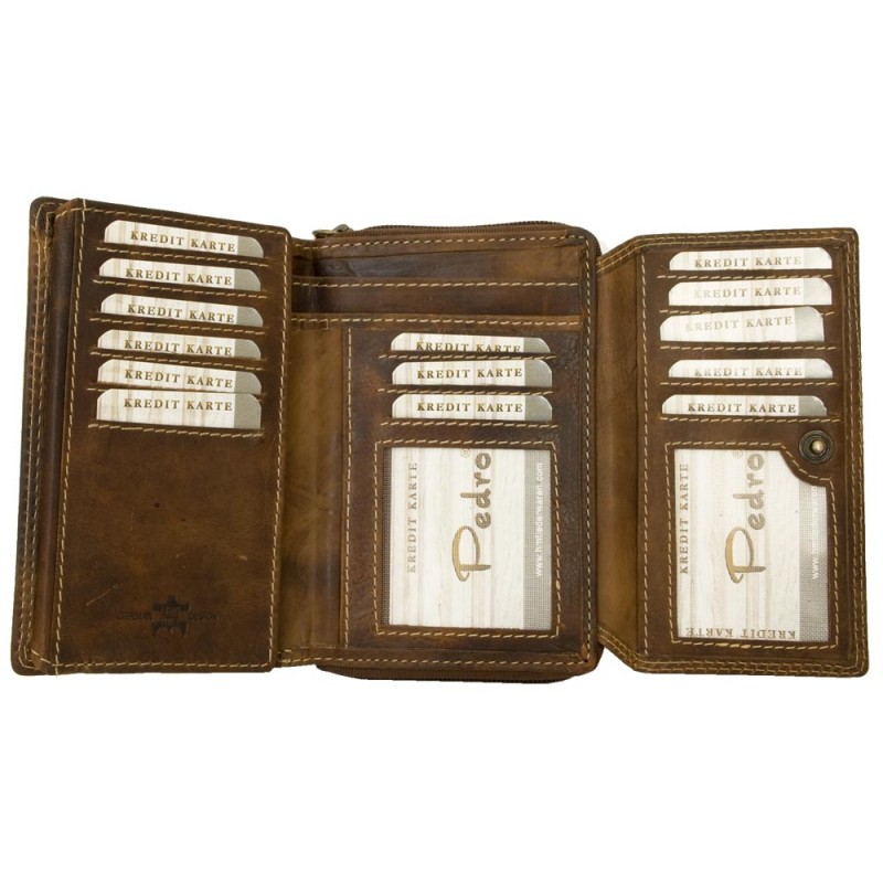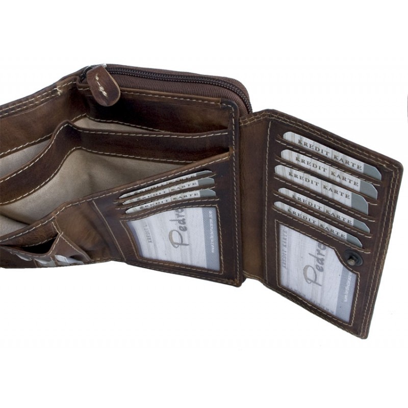 Celá kožená peněženka Pedro ze silné přírodní kůže. Rozměr 17 x 10-11 cm (dva...