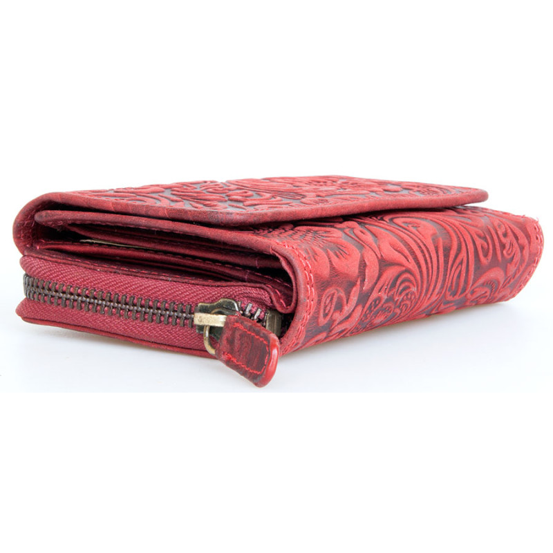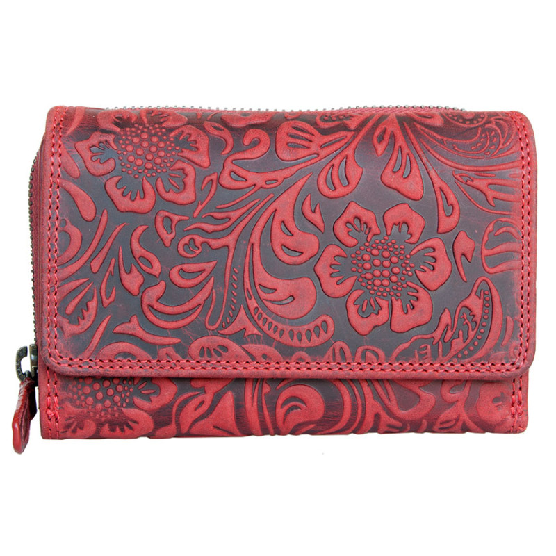 Kožená peněženka z pevné přírodní kůže s raženými květy. Rozměr: 15,7 x 9,5 x...
