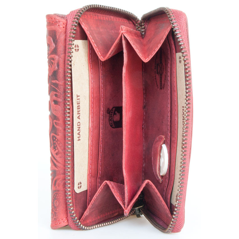 Celá kožená olejovaná peněženka z pevné přírodní kůže s raženým květem....