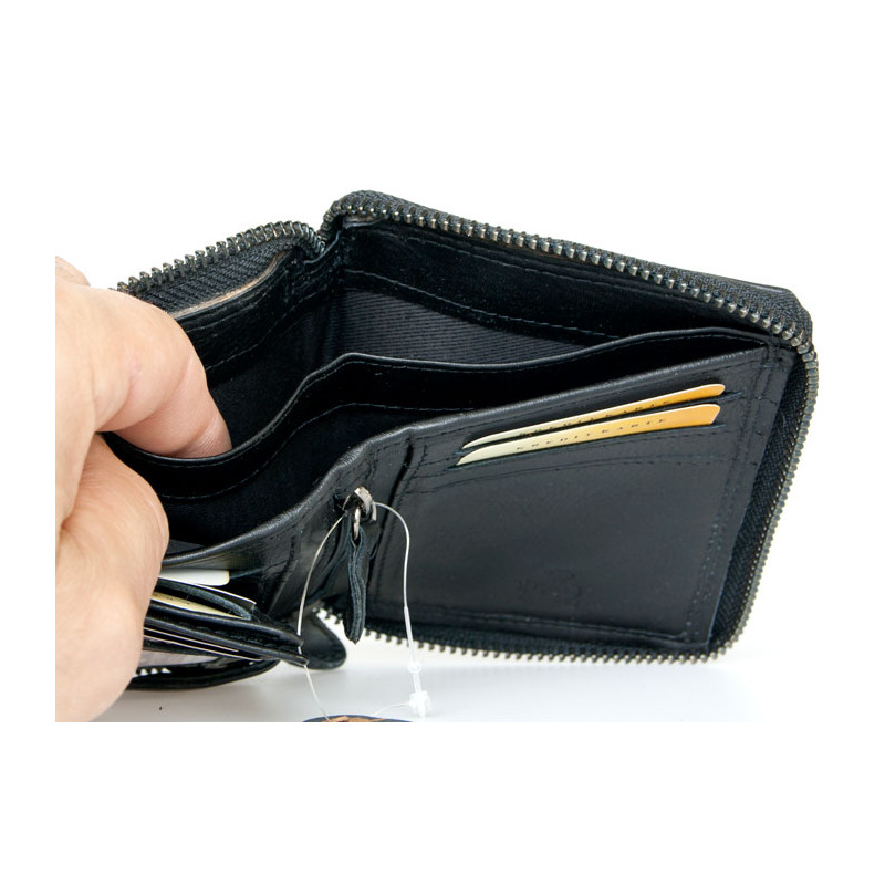 Malá černá kapesní peněženka z měkké kůže s kapsičkou na mince na zip....