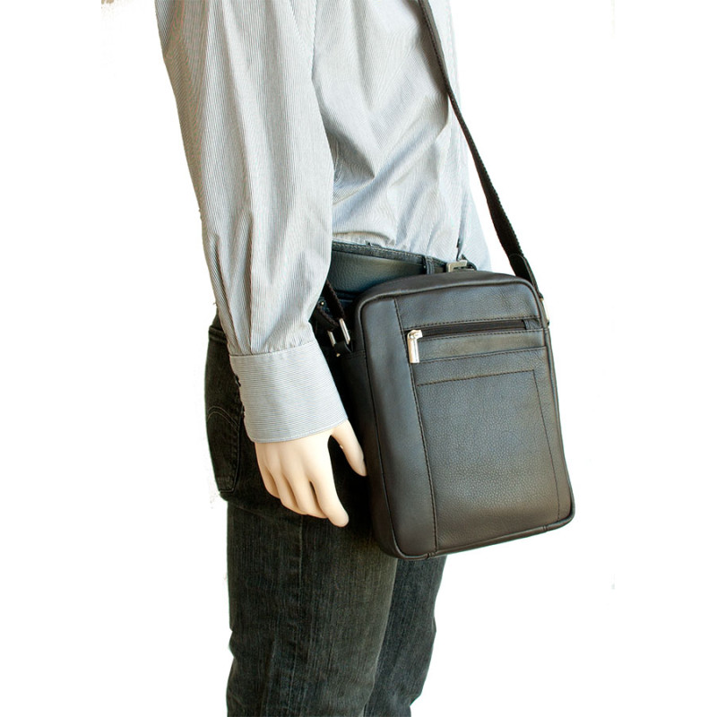 Střední pánská taška ze silné černé kůže s popruhem přes rameno. Rozměr 19 x...
