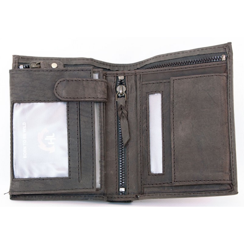 Kožená tmavě šedá peněženka Born to be wild se škorpionem, se dvěma upínkami...