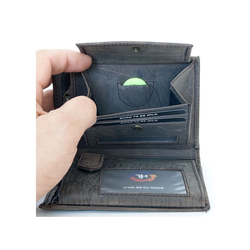 Kožená peněženka Born to be wild z velmi tmavé šedé pevné kůže se žralokem....
