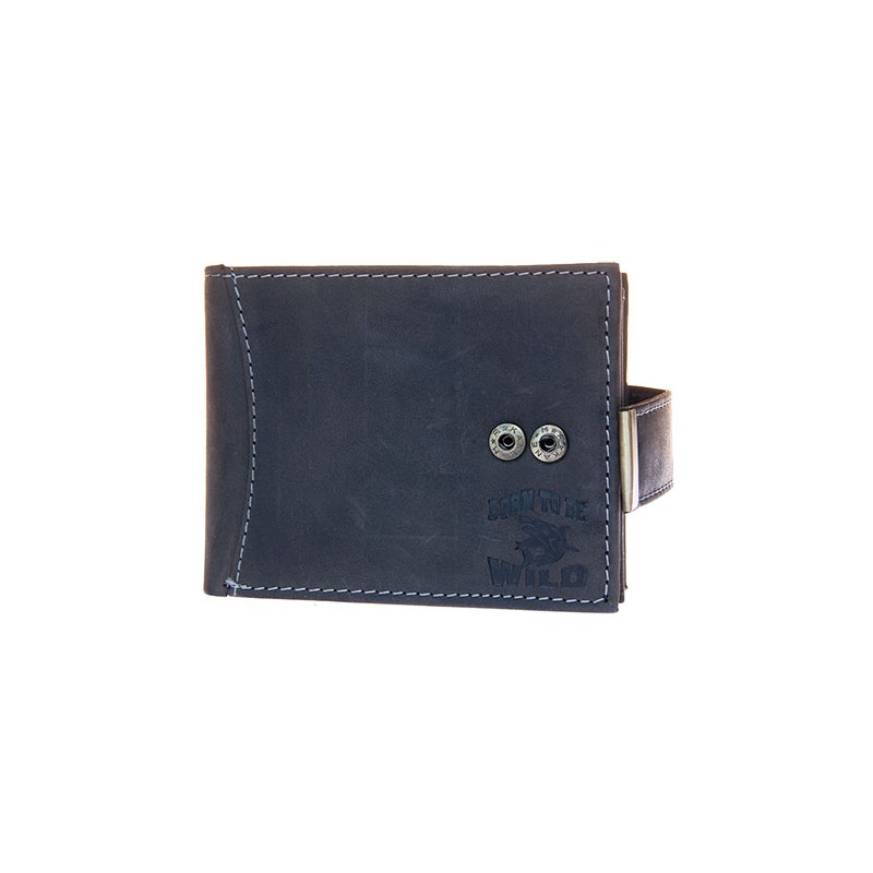 Kožená tmavě šedá peněženka Born to be wild se žralokem, se dvěma upínkami a...