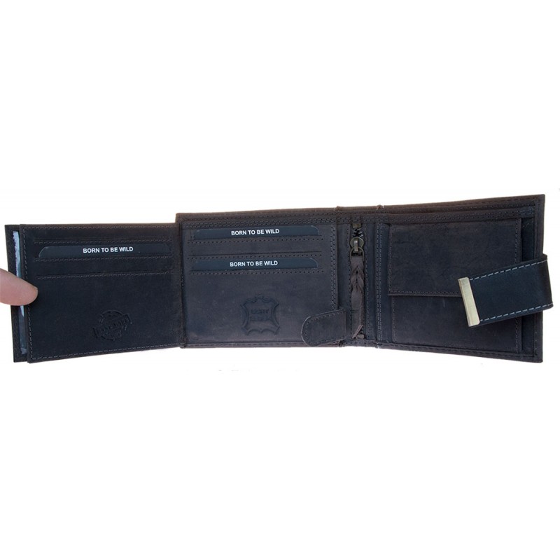 Kožená tmavě šedá peněženka Born to be wild se škorpionem, se dvěma upínkami...