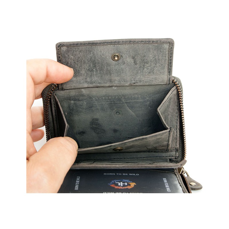 Kožená tmavě šedá peněženka Born to be wild se škorpionem, se dvěma upínkami...