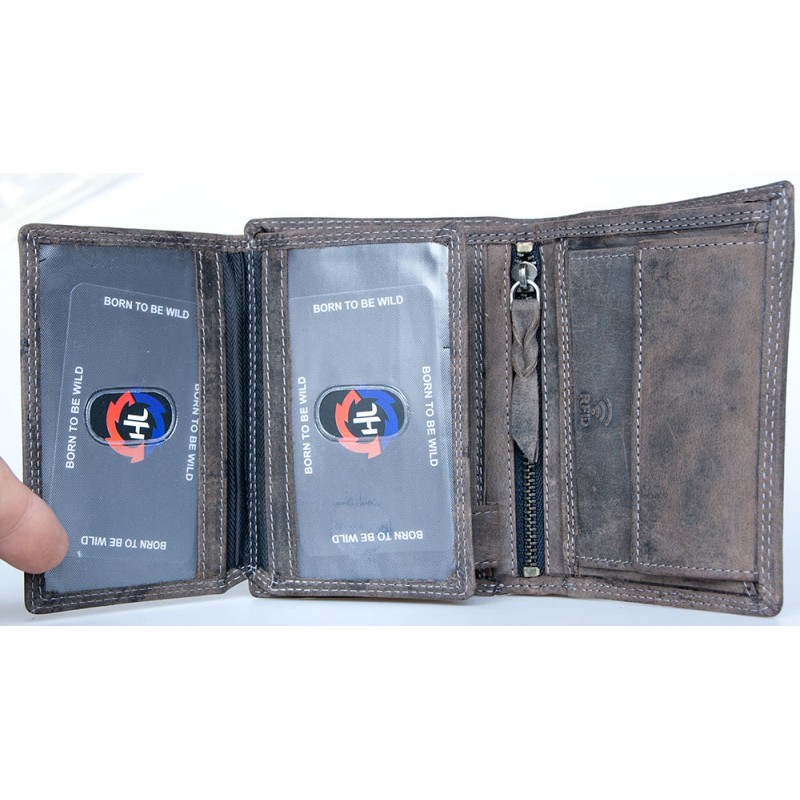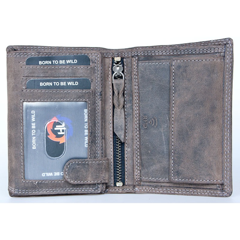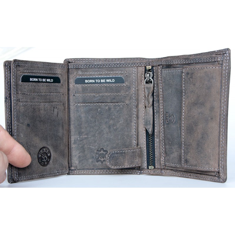 Kožená tmavě šedá peněženka Born to be wild se škorpionem, se dvěma upínkami...