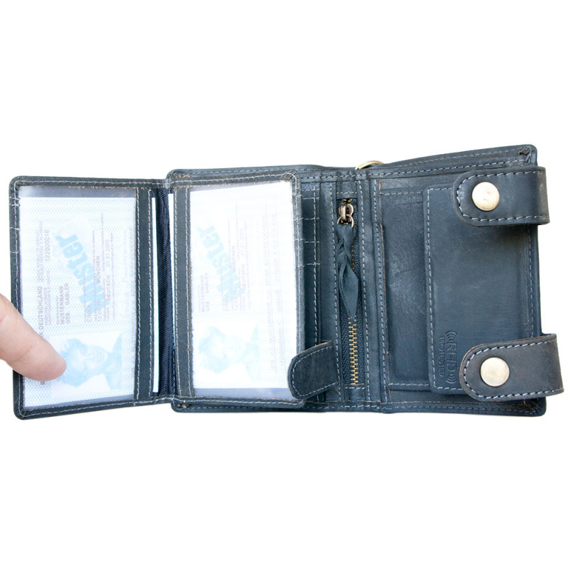 Pánská kožená šedomodrá rozkládací peněženka Azzaro. 12,5 x 9,6 cm.