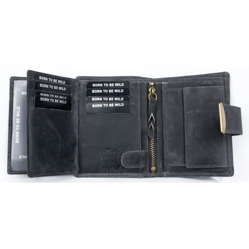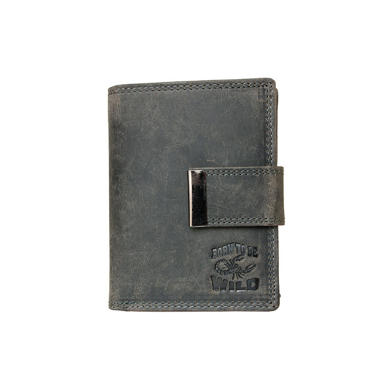 Kožená tmavě šedá peněženka Born to be wild se škorpionem, se dvěma upínkami...