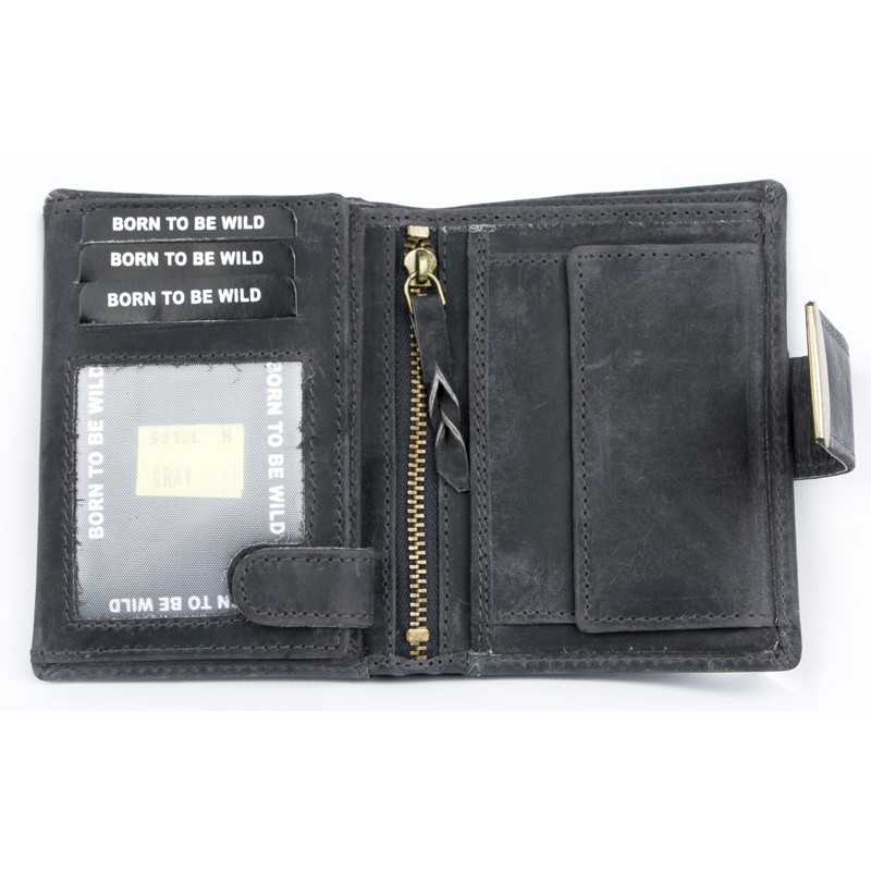 Šedá kožená peněženka Born to be wild -...